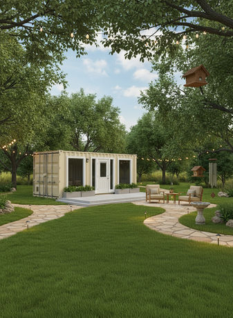 This backyard studio conversion transforms a standard 20ft shipping container into a professional workspace with integrated bathroom facilities. The design maximizes natural light and creates an inspiring environment for work or creative pursuits while maintaining the convenience of a half bath.